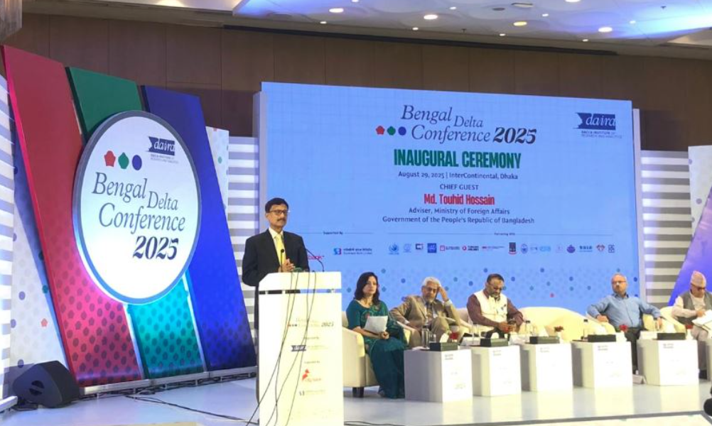 আজ শুক্রবার ‘বেঙ্গল ডেল্টা কনফারেন্স ২০২৫’-এর উদ্বোধনী অনুষ্ঠানে প্রধান অতিথির বক্তব্যে পররাষ্ট্র উপদেষ্টা ড. মো. তৌহিদ হোসেন এ কথা বলেন।